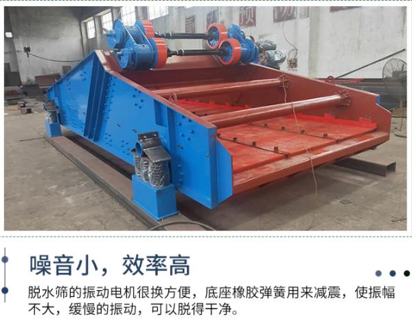 直線脫水篩采用了雙電機自同步技術,通用型偏心塊、可調(diào)振幅振動器。主要由篩箱、激振器、支承系統(tǒng)及電機組成。兩個互不聯(lián)系的振動器作同步反向運轉(zhuǎn),兩組偏心質(zhì)量產(chǎn)生的離心力沿振動方向的分力疊加,反向離心抵消,從而形成單一的沿振動方向的激振動,使篩箱做作往復直線運動。