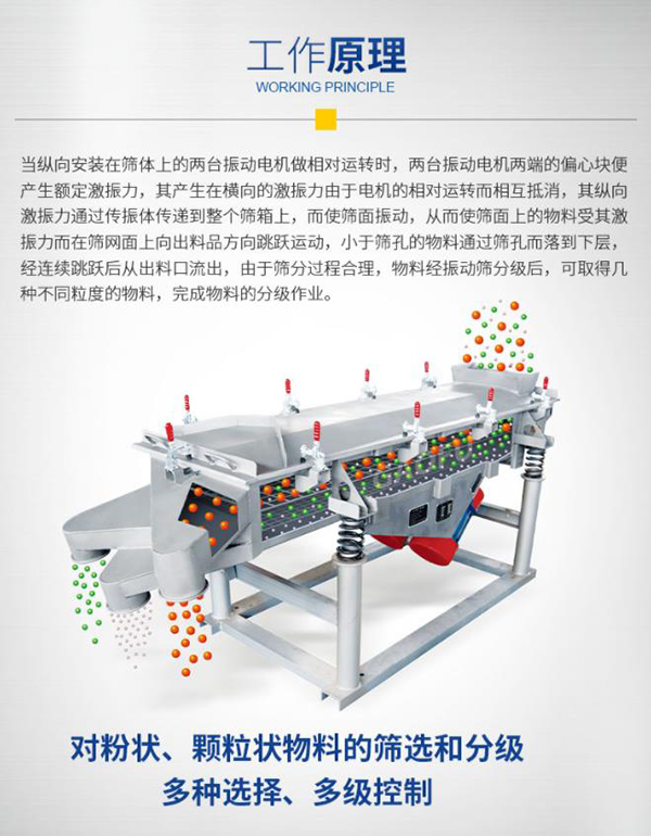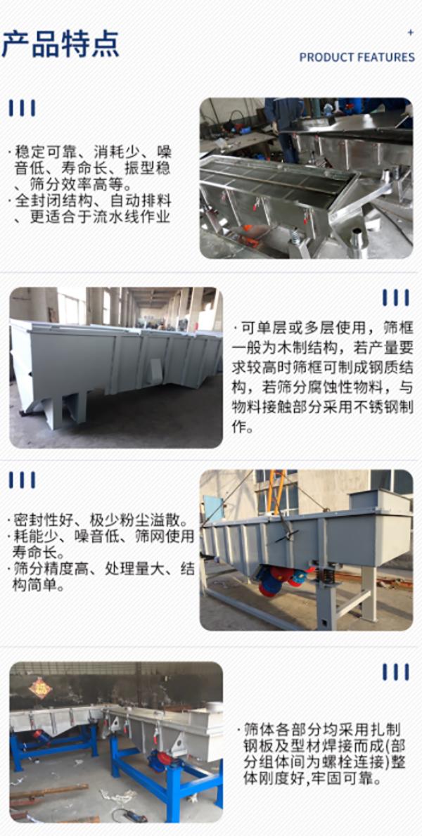 直線振動篩特點(diǎn): 1、對篩網(wǎng)部分的設(shè)計,能迅速換網(wǎng),迅速張緊